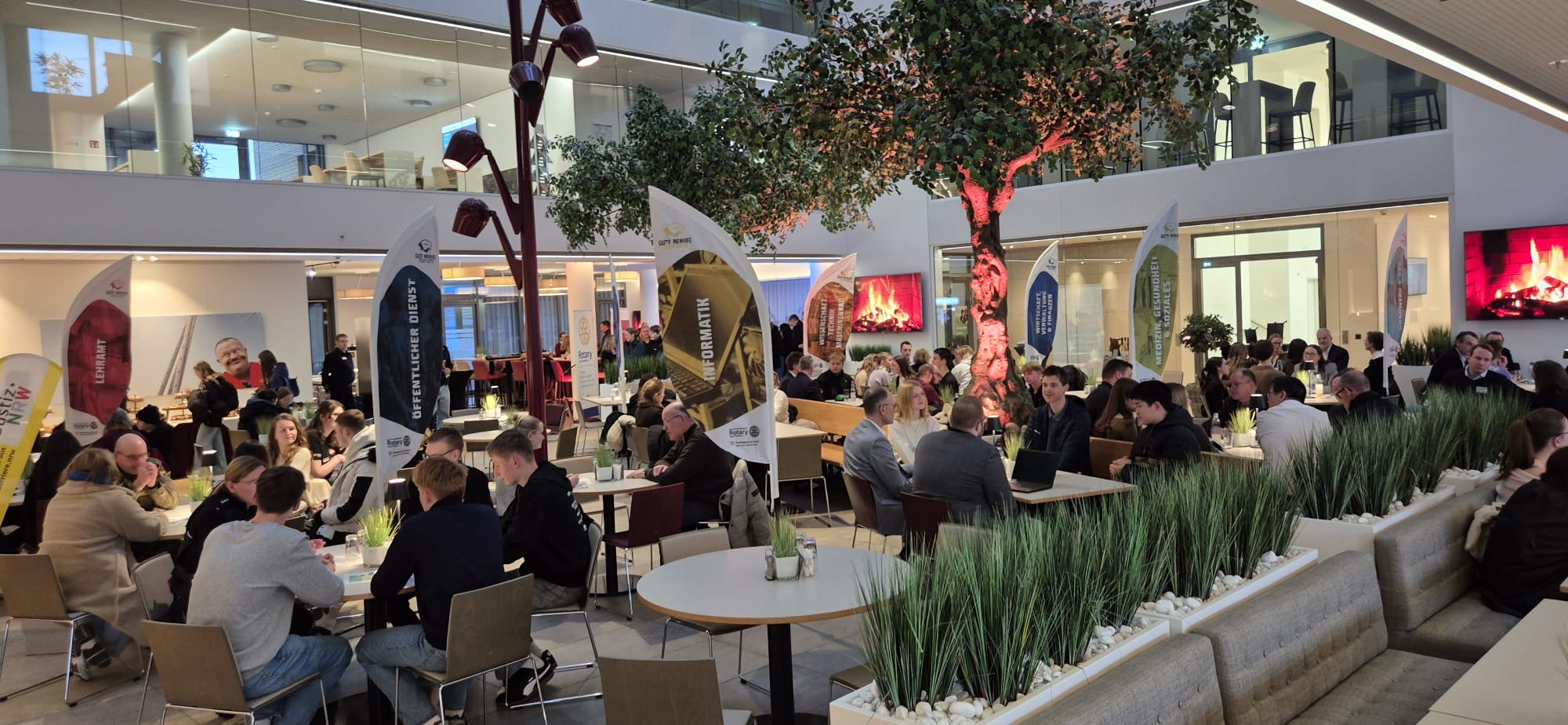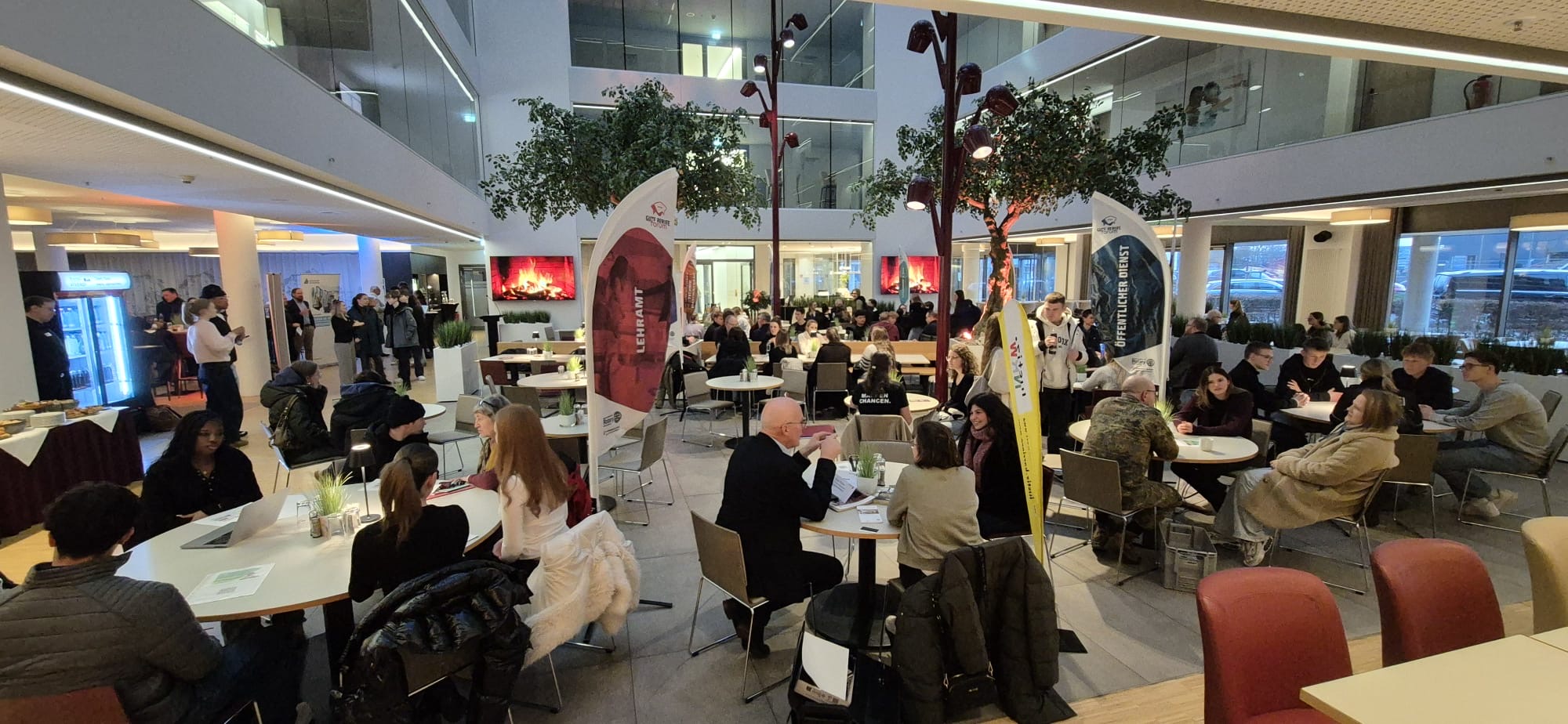 Du gehst direkt an die Tische der gekennzeichneten acht Berufsfelder und kannst hier am Austausch teilnehmen.